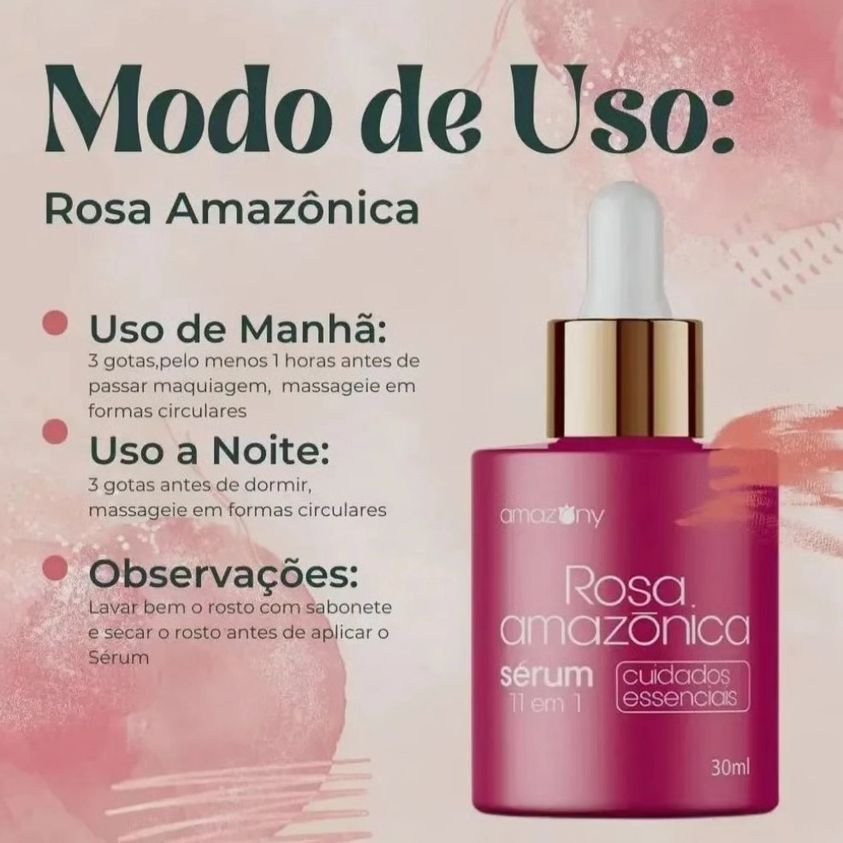 Um frasco, 30 ml – Um mês de tratamento intensivo. Transforme sua rotina de cuidados com a pele. Experimente o Sérum 11 em 1 Rosa Amazônica agora e descubra a beleza natural da sua pele. 💖🌿